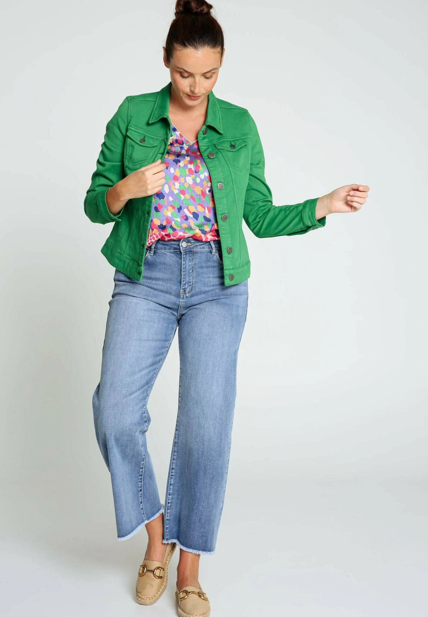 Unifarbene Mit Knöpfen Und TaschenGiacca Di JeansGreen Donna Giacche E Blazer C5E21G04E-M11